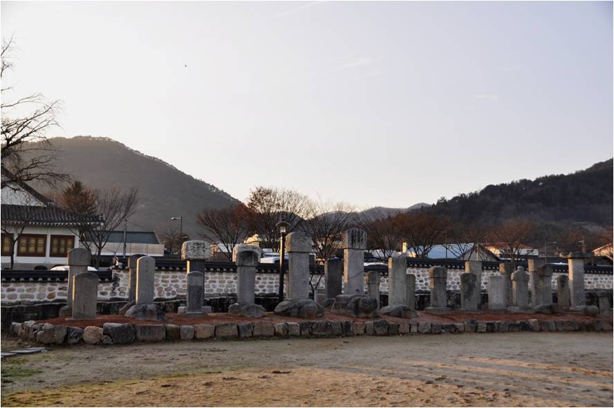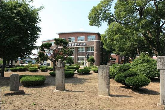 남평공공도서관과 각종 비석들, 이곳은 예전 남평현 동헌 터였다.