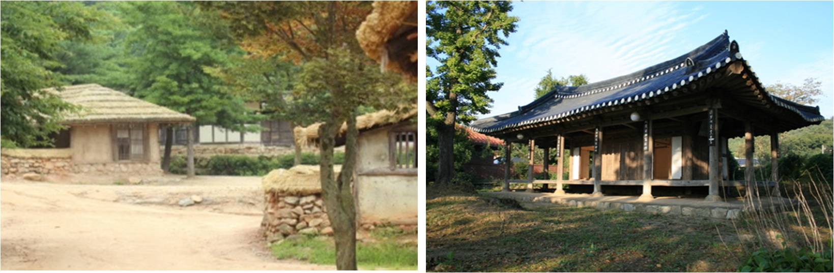 마을 내에서 가장 규모가 큰 건물들은 대부분의 건물이 1890년대부터 1900년대 초까지 지어졌는데, 안채는 一자형으로 놓여있고 사랑채는 마을에서 유일하게 ㄱ자형 구조이다. 사랑마루에서 바깥의 동향을 살필 수 있도록 사랑마당으로 들어가는 토석담에 수키와를 마주 엎어 구멍을 만들어 놓은 것이 특징이다. 이곳의 고택은 개인 건물의 중요성보다 자연 지형을 우선시하여 절반 이상이 북향과 서향으로 지어졌다. 또한 각 가옥은 대문과 담장으로 구분되어 독립된 영역을 형성하면서도 거주자들이 서로 쉽게 왕래할 수 있도록 작은 샛문을 두고 있다.