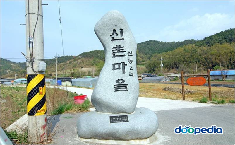 신촌마을은 관공서가 있는 규동마을과 도장교를 사이에 두고 있으며 신동2리에 속하며 남평농협과 하나로마트가 있다. 약 400여전에 영광에 거주하던 진주강씨 강익주가 마을터를 잡고 정착한 이래 마을이 크게 형성되었다고 한다. 강익주는 조선왕조에서 관직에 머물다가 광해군 때 난을 피해 들어왔다. 마을은 밀양박씨, 김해김씨가 많다.
