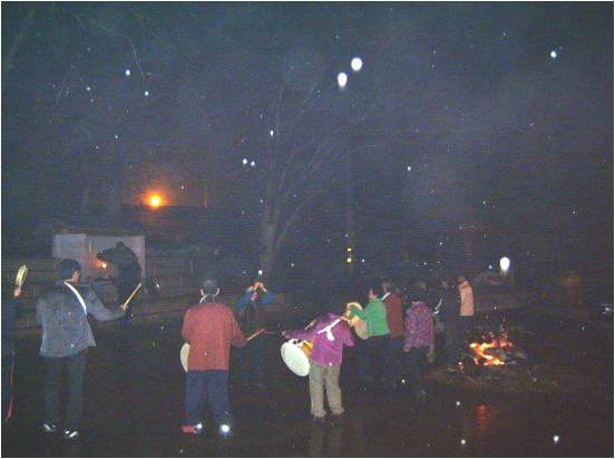 장암마을 한가운데 당산이 있고 한쪽에 신목(神木)당이 있다. 정월 대보름 당산제를 모시기 위해 설을 세고 곧바로 주민들은 매굿(농악) 놀이를 위한 꼬갈등을 만드느라 분주하다. 정월 열나흘 날 저녁, 당산한가운데 모닥불을 밤새 피우기 위해 많은 나무를 준비한다.