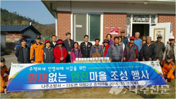 나주소방서는 소화기 작동법과 심폐소생술을 시연하고 준적마을 37가구에게는 소화기와 화재감지기를 무료로 달아줬다.