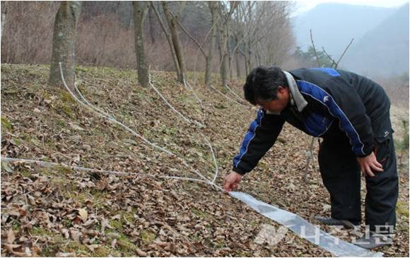 연봉산 자락 일대에는 따뜻한 겨울날씨의 영향으로 평소보다 열흘정도 일찍 고로쇠 수액 채취가 시작돼 정천 지역의 고로쇠 수액 채취에 분주하다. 낮 기온이 10도 이상으로 따뜻하고 낮과 밤의 일교차가 13도 이상 오르면서 수액이 많이 나오고 있다. 윤현농장 윤현상씨는 3월이면 농한기가 아니라 농번기나 다름없다. 14년생 고로쇠나무 300여 그루에서 수액을 채취하느라 바쁘다.