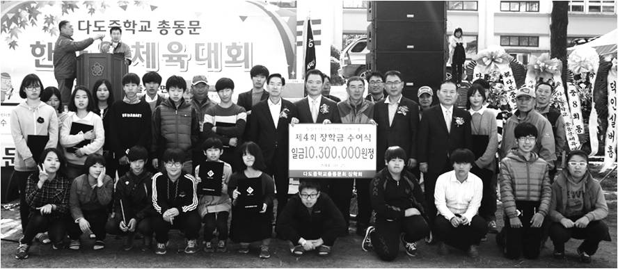 다도중 총동문회는 후배들에게 장학금 지원, F1경기장 관람, 목포 박물관 견학 등 끊임없는 후원과 관심을 보여 주며 후배들에게 큰 귀감이 되고 있다.
