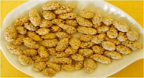 ◆ 비자강정 만들기 <재료> 비자열매 2컵 <고물> 거피한 참깨 2컵, 검정깨 2컵 <양념> 물엿 1컵, 설탕 1/2컵 - 만드는 법 ① 비자 겉껍질을 벗기고 팬에 약간의 기름과 물을 볶으면서 속껍질을 벗긴다. ② 냄비에 물엿과 설탕을 2:1 비율로 섞고 비자열매를 넣어 살짝 조린다. ③ 시럽이 잘 입혀진 비자에 참깨와 검정깨를 묻힌다. 잘 익은 비자열매는 항아리 속에 채워 뚜껑을 덮고 일주일 정도 두면 새까맣게 삭혀져서 겉껍질 벗기기가 좋다. 겉껍질을 벗기고 햇볕에 말리면 속껍질도 쉽게 벗길 수 있다. (출처 : 대한급식신문)