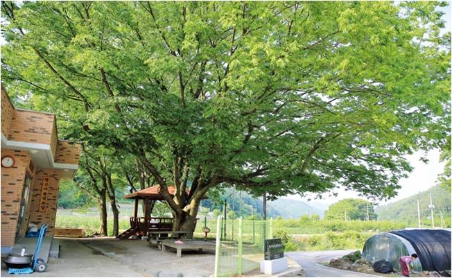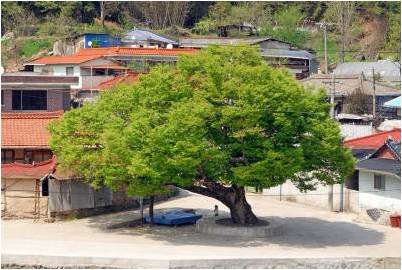 당산목 느티나무, 높이 13m, 수령120sus, 흉고 1.2m, 수관직관 10m