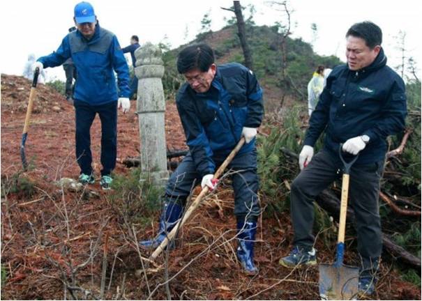 내달 5일 제 73회 식목일을 기념해 ‘숲 속의 전남’ 조성에 기여하고자 마련된 이날 나무심기 행사에서 참여자들은 가랑비가 내리는 흐릿한 날씨 속에서도 편백 총 1,500본을 식재하고 산불예방 및 산지 정화 캠페인을 함께 실시했다.