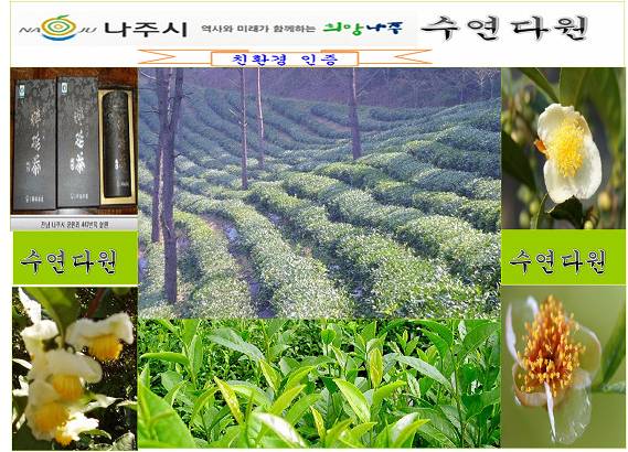 수연다원 제품은 국립농산물품질관리원으로부터 무농약농산물로 인증을 받았다. 수연다원 녹차밭을 전진기지로 해서 나주호 주변 농가에 차 재배를 확산시켜 다도면을 명실상부한 녹차의 고장으로 만들어가려는 꿈을 키우고 있다.