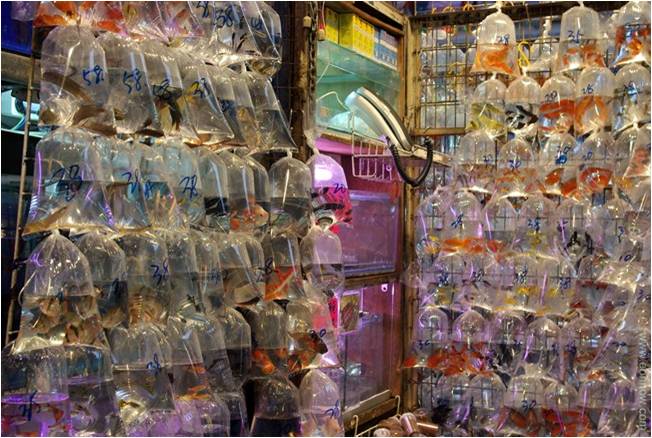 홍콩, 일본, 중국 광동성에서는 금붕어가 가장 인기가 많은 애완동물이다. 중국에서 가장 좋다는 붉은색과 황금색이 함께 있는 금붕어는 없어서 못 팔 정도로 인기가 많다. 물고기를 키우면 복이 들어온다는 생각 때문에 많은 사람들이 금붕어를 키운다. 일본 아이들은 축제에서 비누방울로 금붕어를 한 마리씩 건지는 놀이을 하면서 축제를 줄긴다. 금붕어 마켓에 가면 주인을 기다리는 물고기들이 한 마리씩 봉투에 담겨 있다. 색색이 알록달록한 물고기들을 구경하는 재미도 있고 상상력을 키울 수가 있어 아동교육에도 참으로 좋은 것 같다.