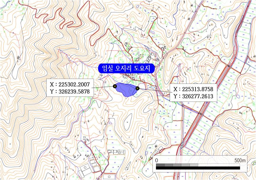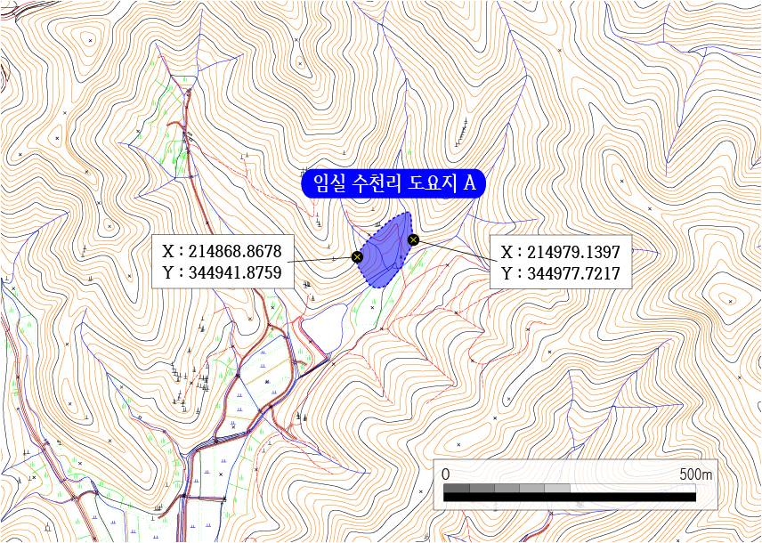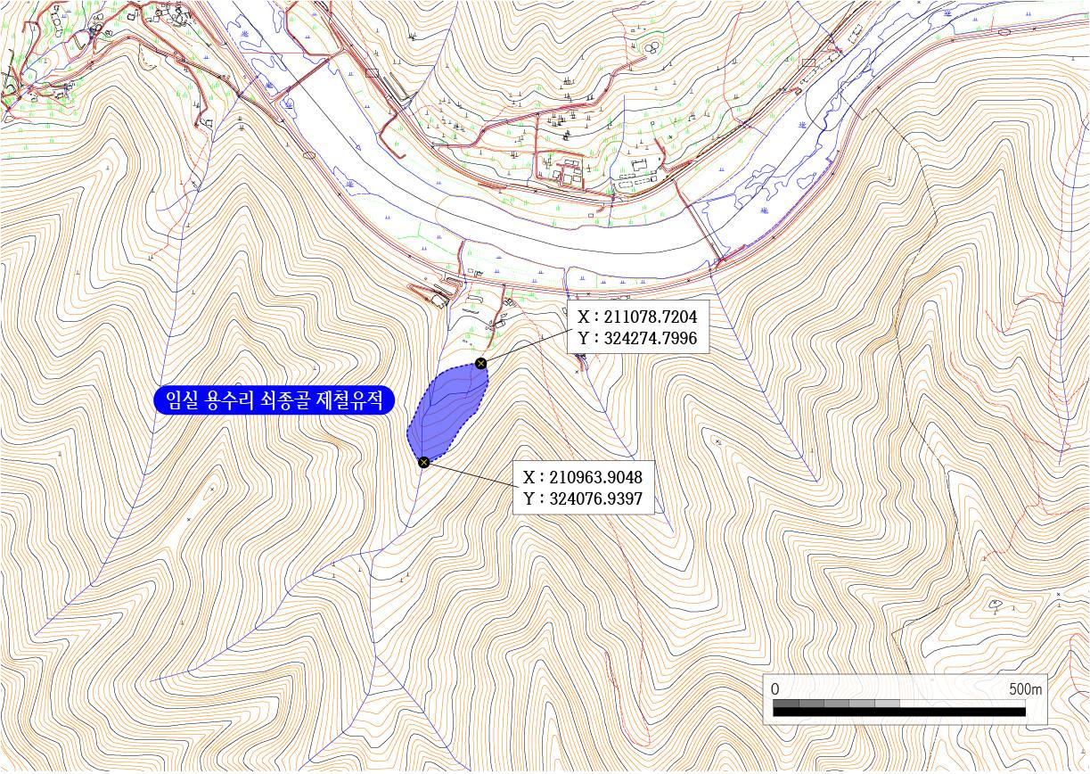 ▲ 강진면 용수리 사적골 제철유적 현황도