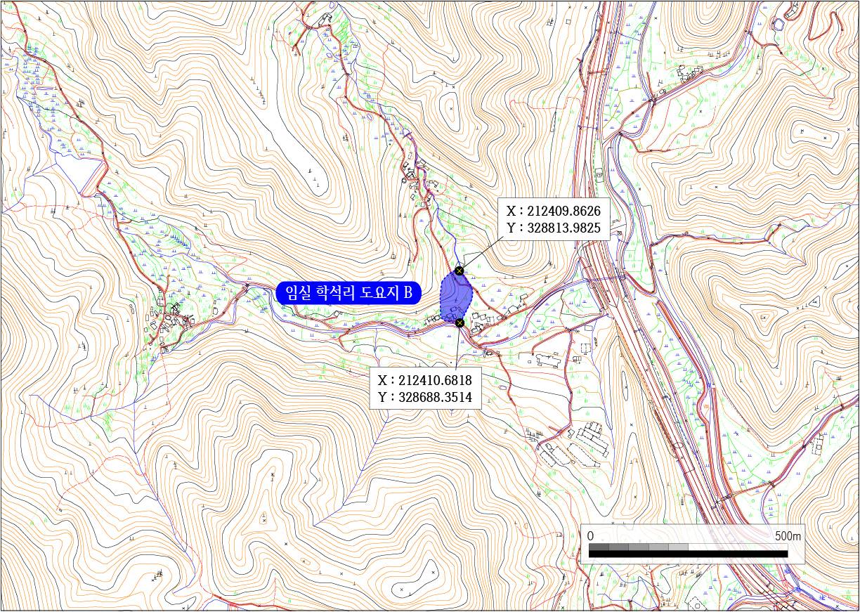 소재지 : 삼계면 학정리 용수골마을 남쪽 유적의 현황 : 삼계면 학정리 용수골마을 남쪽에 학정리 도요지 B가 있다. 원통산에서 발원하는 귀염나무골과 저서골 두 갈래 물줄기가 합쳐지는 곳으로 용수골마을에서 남쪽으로 500m 가량 떨어진 곳에 위치한다. 삼계면 학정리와 청웅면 옥석리 경계에 위치한 지초봉(571m)에서 남쪽으로 뻗어 내린 산자락의 서쪽 기슭 하단부로 비교적 완만한 지형을 이룬다. 인근 마을 주민들이 ‘사구시’라고 부르는 곳으로 도요지가 들어서기에 최적의 자연 환경을 이룬다. 최근에 농원을 조성하는 과정에 상당한 깊이로 제토작업이 이루어져 당시에 유적이 심하게 훼손된 것으로 추정되며, 농원 가장자리에 생긴 경사면에 다량의 백자편과 원형 도침이 쌓여있다. 수습유물 : 현지조사 때 백자와 도지미가 채집되었는데, 백자는 대접과 접시가 반절씩 섞여있고 백자 완도 일부 포함되어 잇다. 유약의 색깔은 백색·청백색·회백색 등으로 다양하며, 전면에 투명하게 시유된 유약은 거의 빙렬이 보이지 않는다. 굽은 투박한 다리 굽과 굽바닥이 약간 내경된 다리굽이 섞여있으며, 굽의 높이도 0.5~2cm 내외로 다양하다. 소성방법은 대부분 포개어 소성하였는데, 내화토 비짐눈이 대부분을 차지한다. 제작수법은 유약이 시유되지 않은 부분이 있을 정도로 조잡하고 투박하지만 백색·청백색을 띠는 백자는 대체로 우수하다. 요도구는 직경 1.5cm 내외로 납작하고 약간 경사진 원형 도지미편이 대부분을 차지한다. 백자와 도지미의 속성에 의하면 도요지는 18세기 후반부터 상당 기간 동안 운영된 것으로 추정된다.