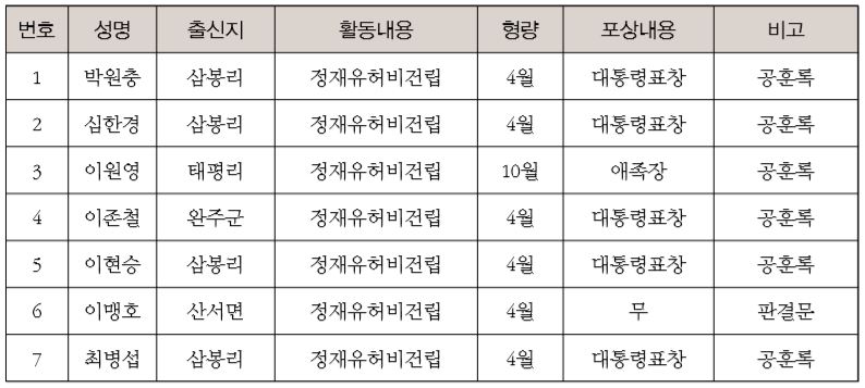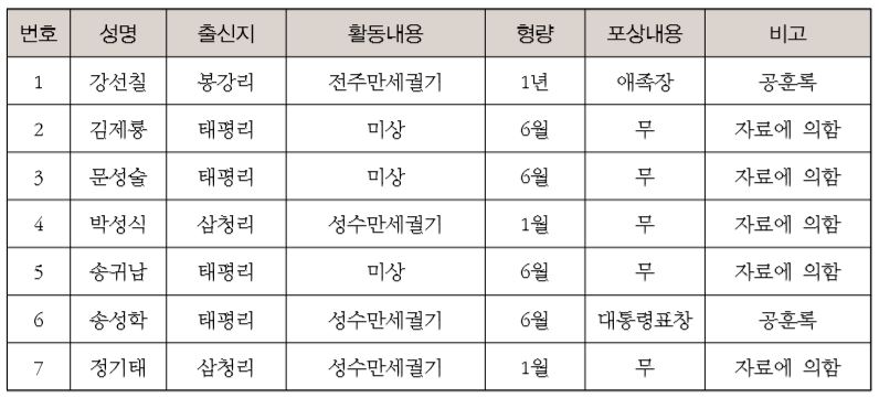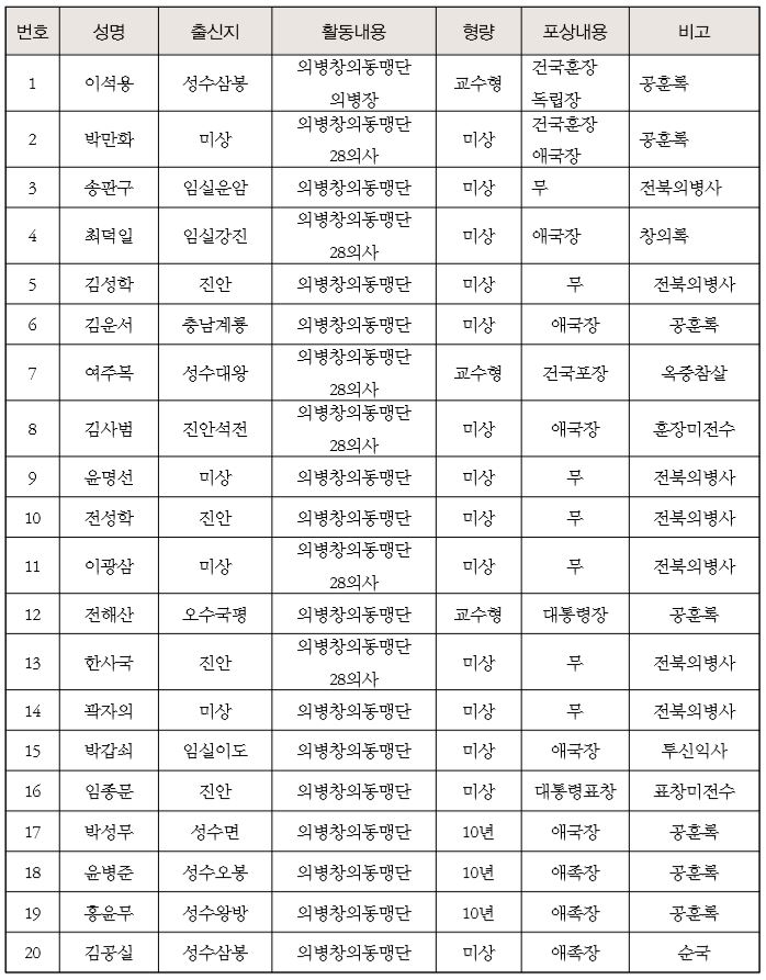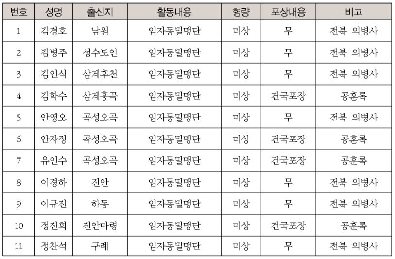 註 : 《任實獨立運動史》崔成美 편저 자료에 의함