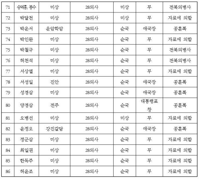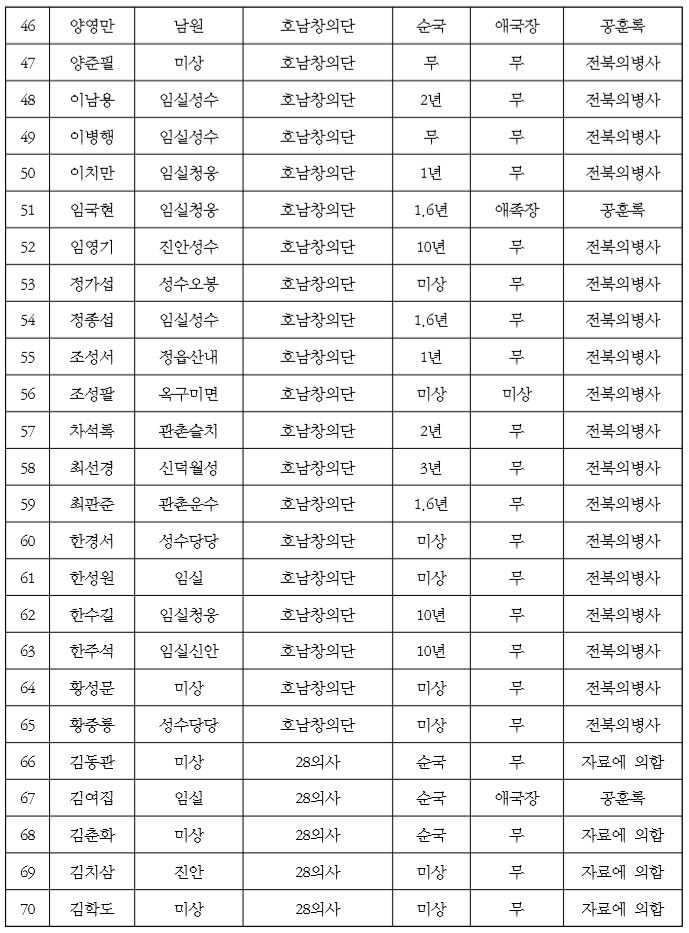 그러면 28의사 조의단으로 봉정된 인물들은 어떤 경위로 선정되었는지를 살펴볼 필요가 있다. 이에 참고되는 자료는 『호남창의록』 권1에 수록된 「전사한 의병들에 한 제문」[祭戰亡義士文]이다.