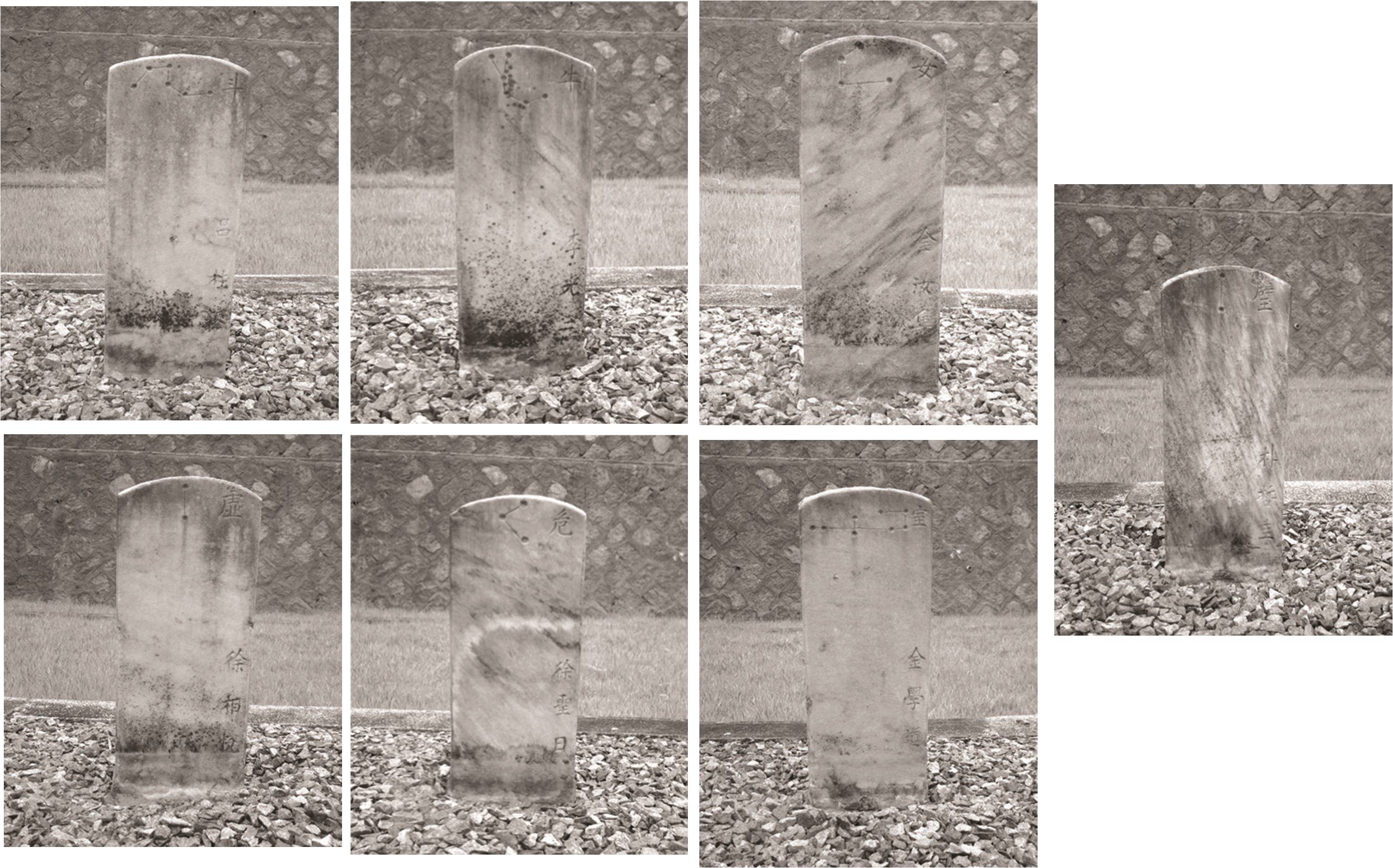 * 중심북극비 * 동방칠수비 : 각 항 저 방 심 미 기 * 북방칠수비 : 두 우 녀 허 위 실 벽 * 서방칠수비 : 규 루 위 묘 필 자 삼 * 남방칠수비 : 정 귀 류 성 장 익 진