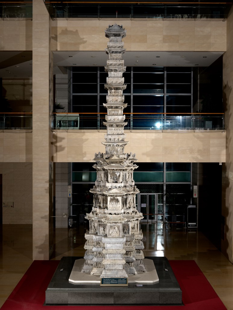 ▼석탑(대리석) : 개성 경천사 터 10층 탑(고려 시대, 대리석이 산성비에 약하기에 국립 중앙 박물관 로비)