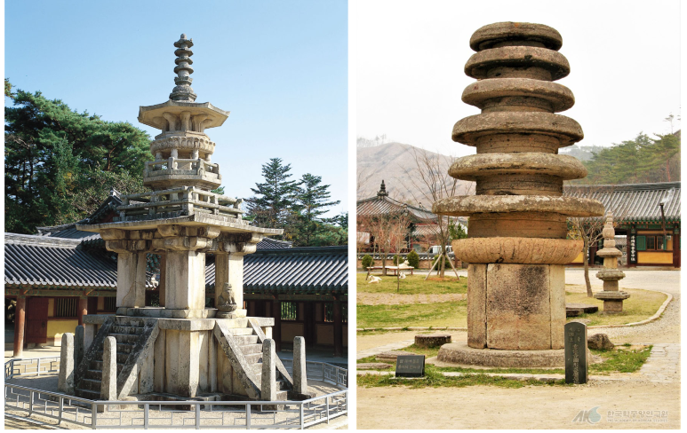 | | 익산 미륵사지 석탑 | 부여 정림사지 5층 석탑 | | | 경주 분황사 모전 석탑 | | | 경주 감은사지 3층 석탑 | 경주 불국사 탑(석가탑, 다보탑) | | | 영광탑(중국 길림성) -주간동아 사진- | | | 평창 월정사 8각 9층 석탑 | 개성 경천사지 10층(대리석) 탑 | | | 보은 법주사 8상전(목조탑) |