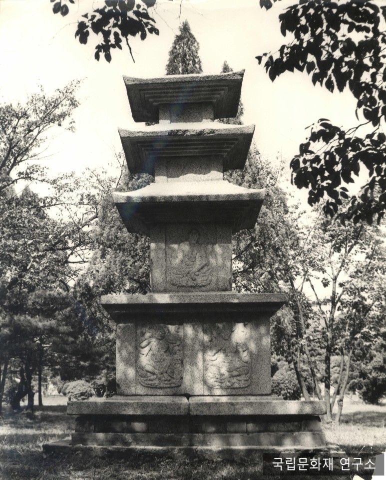 ① 통일신라시대 ② 높이 5.75m ③ 탑은 2단의 기단(基壇)에 3층의 탑신(塔身)을 올린 형태로 상륜부는 모두 없어졌음 ④기단에는 위·아래층 모두 각면의 모서리와 가운데에 기둥 모양이 새겨져 있고, 탑신 역시 몸돌의 모서리마다 기둥 모양을 한 조각이 있다. 지붕돌은 수평을 이루던 처마가 네 귀퉁이에서 살짝 치켜 올라가 간결한 모습이며, 밑면에는 5단의 받침을 둠