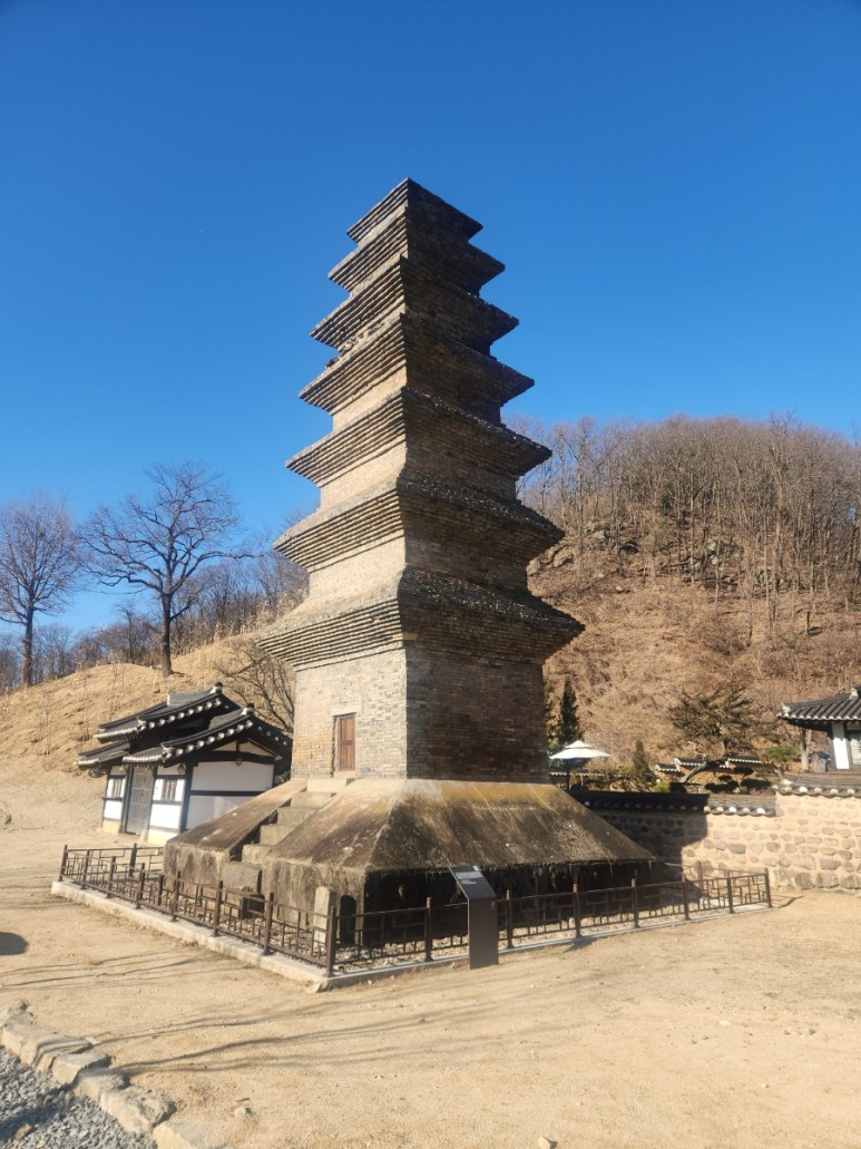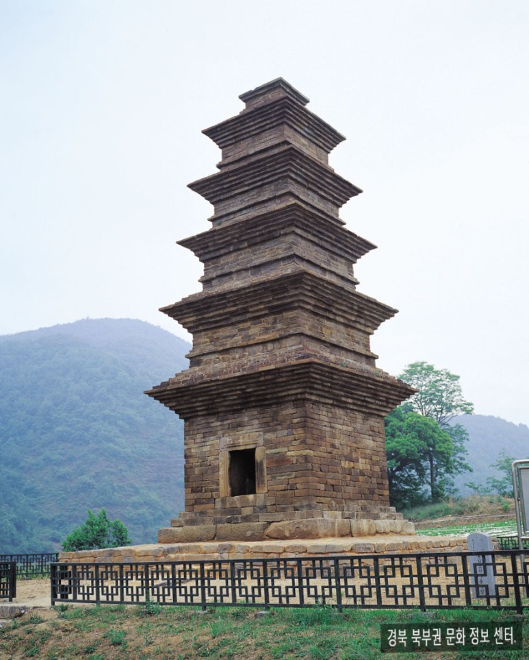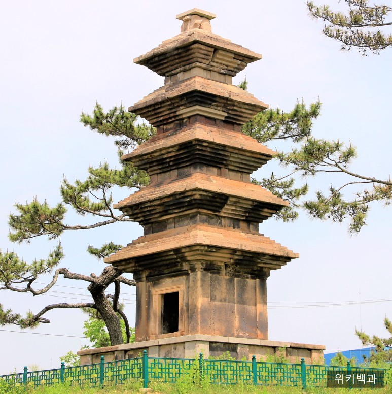 ① 통일 신라 시대 ② 높이 9.6m. ③ 돌을 벽돌 모양으로 다듬어 쌓아 올린 전탑(塼塔) 양식과 목조건축의 수법을 동시에 보여주는 특이한 구조 ④ 기단은 여러 개의 돌로 바닥을 깐 뒤, 목조건축을 본떠 가운데 기둥과 모서리 기둥 모두를 각각 다른 돌로 구성하였다. 탑신은 1층이 높으며 2층부터는 높이가 급격히 줄어드는 모습을 보이는데, 1층 몸돌에는 불상을 모시는 방인 감실(龕室)을 설치하였다. 지붕돌은 전탑에서 보이는 모습처럼 밑면뿐만 아니라 윗면까지도 층을 이루고 있는데 윗면이 6단, 아랫면이 5단이다. 지붕돌은 네 귀퉁이가 살짝 들려있어 목조건축의 지붕 끝을 떠올리게 함