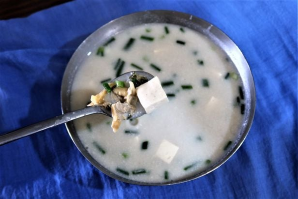 짓갱은 바자락 살만 솥에 넣고 물을 적당히 붓고 끓인 다음에 밥과 깨를 짓이겨서 걸쭉하고 텁텁하게 만들어 허기를 면하게 하는 토속음식이다. 파와 두부를 넣으면 맛이 더욱 살아난다.