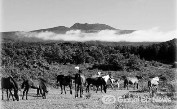▲ 한라산 중턱 목장의 제주마(천연기념물 제347호) (사진:제주축산진흥원)