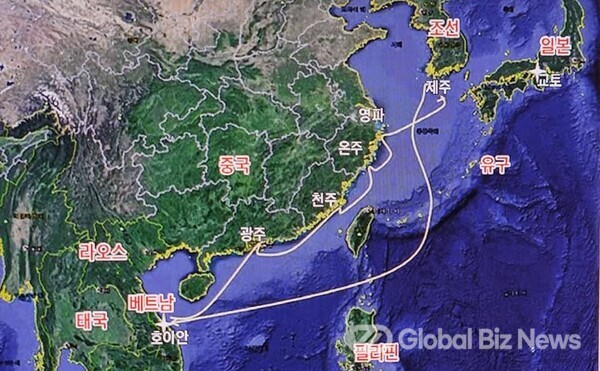 ▲ 〈김대황(金大璜) 표해일록〉 항해길