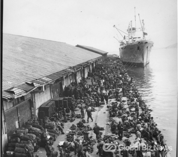 ▲ 1950년 8월 6일 부산항 제1부두에 도착한 미군 병사