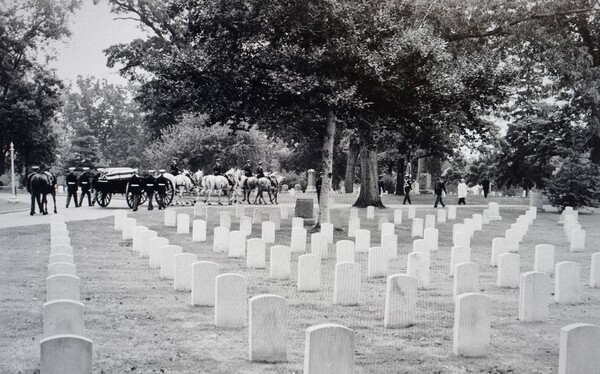 알링턴 국립묘지에 도착하여 21발의 예포가 발사되고, 나팔수의 진혼곡이 울려 퍼지는 가운데 해병대 사령관이 모셔진 관은 의장대의 사열을 받고 운구되어 영현병(英顯兵)이 안장하였다. 관 위에 올렸던 성조기는 의장대원이 미망인에게 전달하여 엄숙하게 조의를 표했다.