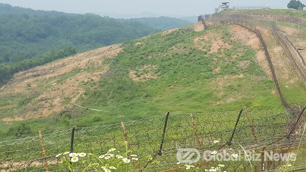 경기도 연천군 백학면 육군 25사단의 상승전망대(OP)에서 비무장지대를 바라보면, 1974년 발견된 ‘1호 땅굴’과 함께 북방한계선이 가까이 보인다. 비무장지대는 1953년 7월 27일 정전협정에 따라 임진강 하구에서 강원도 고성 동해안까지 155마일(248㎞) 전선에 군사분계선(휴전선·MDL)을 중심으로 남북에 각 2㎞씩 군사적 완충지대를 설정했다. 그러나 1980년 중반에 남북의 철책선 전진 배치로 비무장지대 면적 992㎢이 570㎢로 43%나 축소됐다.