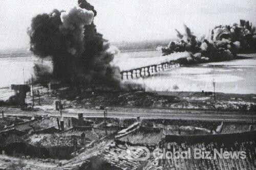 ▲ 미군 B-26 폭격기 한강철교 폭격(1950년 6월 29일~7월 16일) (사진: 미 국립항공우주박물관)