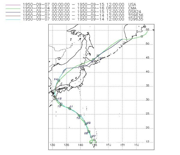 1950년 기상청 태풍 기록을 보면 인천상륙작전을 시행할 때 2개의 태풍이 영향권에 있었다. 1950년 8월 29일 필리핀에서 발생한 태풍 제인(Jane)은 일본에 심각한 영향을 미친 열대성 저기압으로 북상하면서 북동쪽으로 방향을 틀어 최고 강도 185km/h에 도달한 후 9월 3일 카테고리 2 태풍으로 도쿠시마현 미나미 지역을 강타했다. 이후 태풍은 빠르게 9월 7일 아와지섬과 고베 지역을 통과했다. 폭우로 산사태가 발생하고 홍수로 인해 398명이 사망하고 141명이 실종되었다.