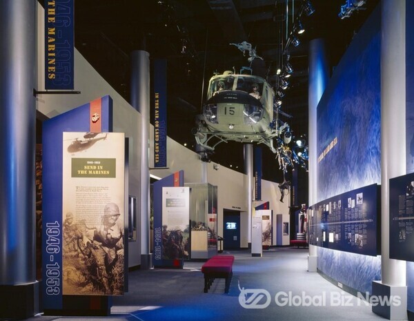 미 국립해병박물관 안에 들어서면 위로 유리 천장이 보이고, 미 해병대가 전투에서 사용했던 전투기, 장갑차, 헬리콥터 등 다양한 무기들이 전시되고 있다. 한국관 전시실에는 장진호 전투, 인천상륙작전을 비롯하여 많은 유물과 사진을 전시되어 관람객에게 당시의 상황을 그대로 보여준다. 미 국립해병박물관은 1년에 42만 명의 관람객이 찾아오는 명소이다.