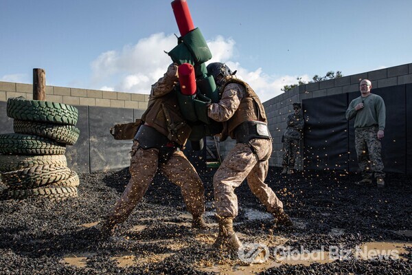 위의 사진은 2024년 1월 23일 미국 캘리포니아주 해병대 베이스캠프 펜들턴 기지에서 가혹한 훈련을 하는 사진이다. 미 해병대 신병은 장애물을 통과하고, 낮은 곳을 빡빡 기어 다니고, 생존 싸움을 한다. 가혹한 훈련 Crucible은 신병들이 신병 훈련을 통해 배운 지식과 훈련을 적용하여 미 해병대원의 칭호를 획득하는 54시간 훈련이다.