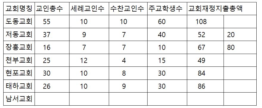 6. 교인수 : 100명