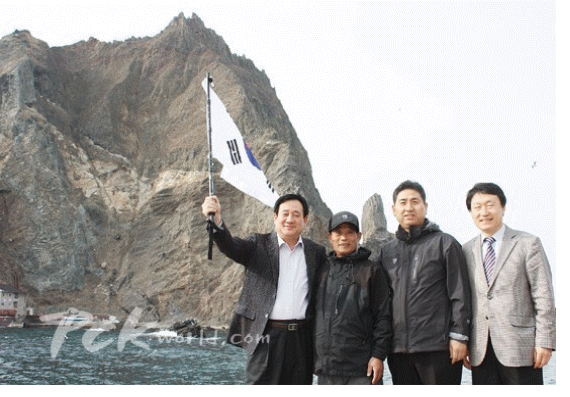 저마다 탄성을 지르며 약속이나 한듯 "독도다"라고 일제히 외쳤다. 그간 일본의 억지주장에 누르고만 있었던 화를 토해내는 듯 했다. 챙겨온 태극기를 가방에서 주섬주섬 꺼내는 이들도 보였다. 그 태극기는 이리저리 관광객들의 손에 들리며 인기만점의 매력을 발휘했다.