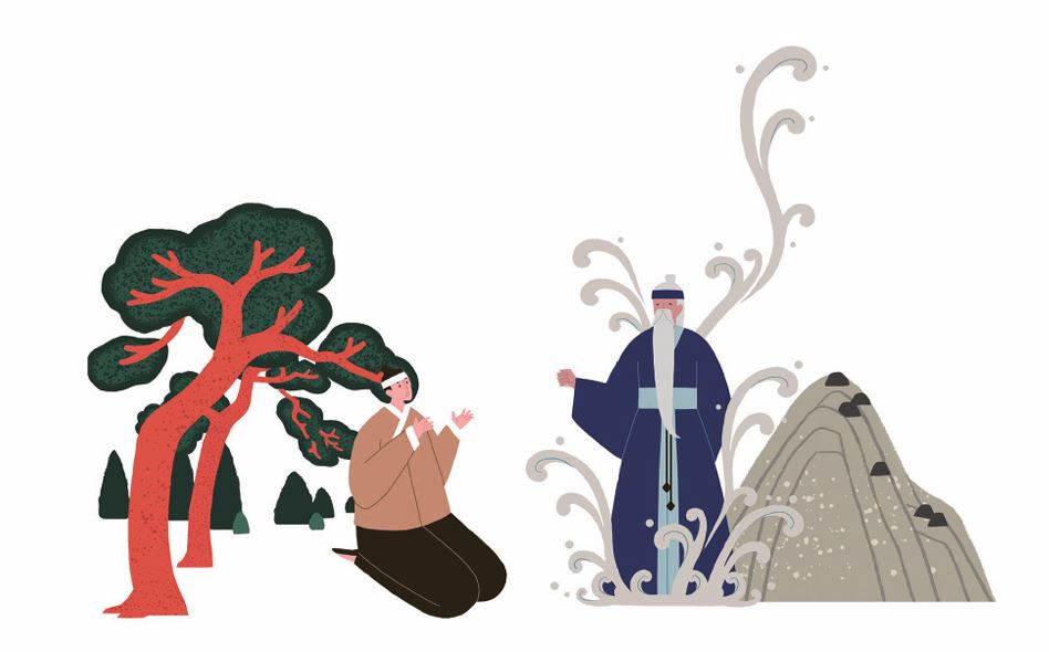 그때 백발노인 한분이 봇짐을 짊어지고 들어와서는 주인 아들에게 하룻밤 묵어가고 싶다고 말했다.
