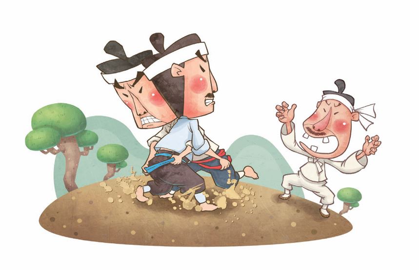 싸움의 해결이 나지 않자 고을 원님께 가서 이야기를 하였다. 원님은 가만히 듣더니 글을 써 주었는데 이렇게 씌어 있었다.