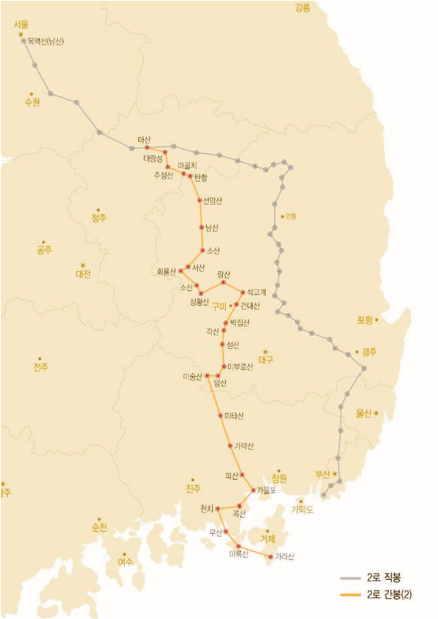 ▶ 지도 1 조선 후기 제2로 간봉 봉수 노선 지도 4)