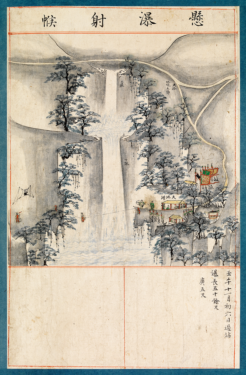 1702년(숙종 28) 11월6일 현재의 중문 천제연폭포에서 활쏘는 모습을 그린 그림