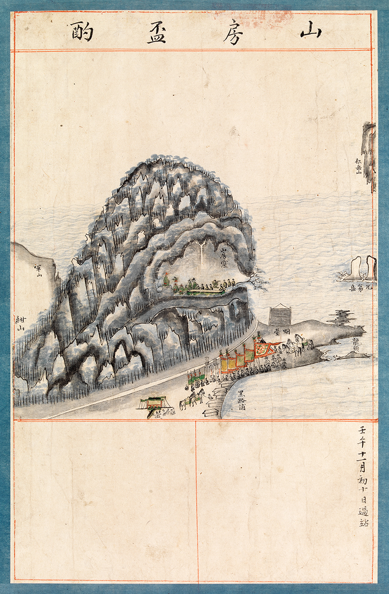 1702년(숙종 28) 11월10일 산방굴(山房窟)에서 배작(盃酌)의 그림을 그린 그림