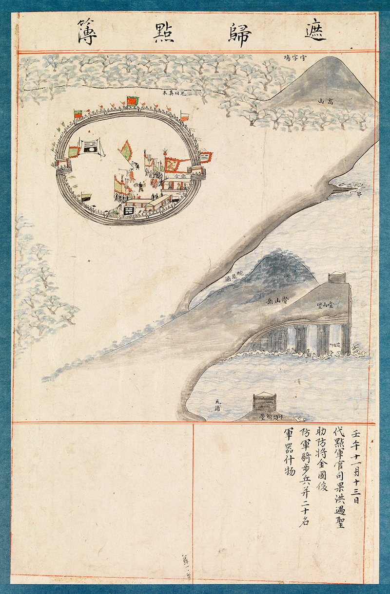 1702년(숙종 28) 11월13일 실시한 차귀진의 조련과 점검하는 모습을 그린 그림