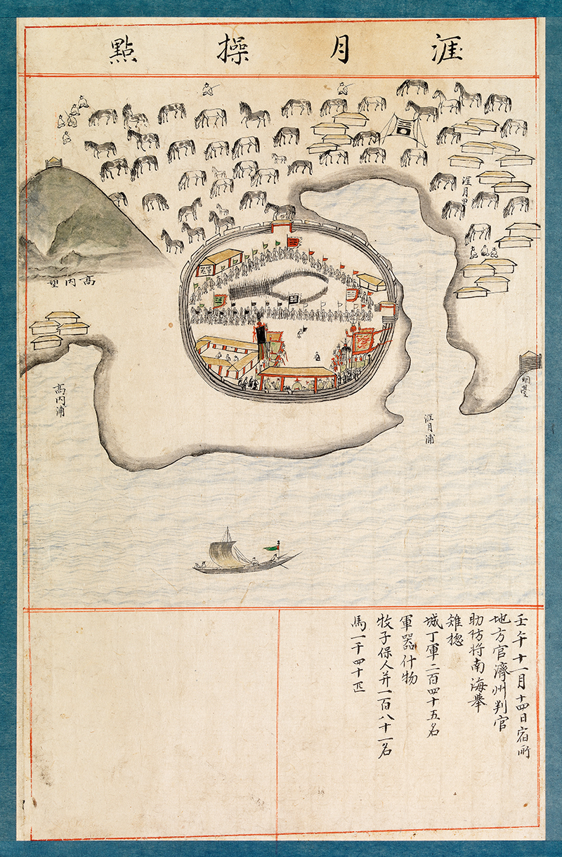 1702년(숙종 28) 11월14일 애월진의 군사와 말을 점검하는 그림