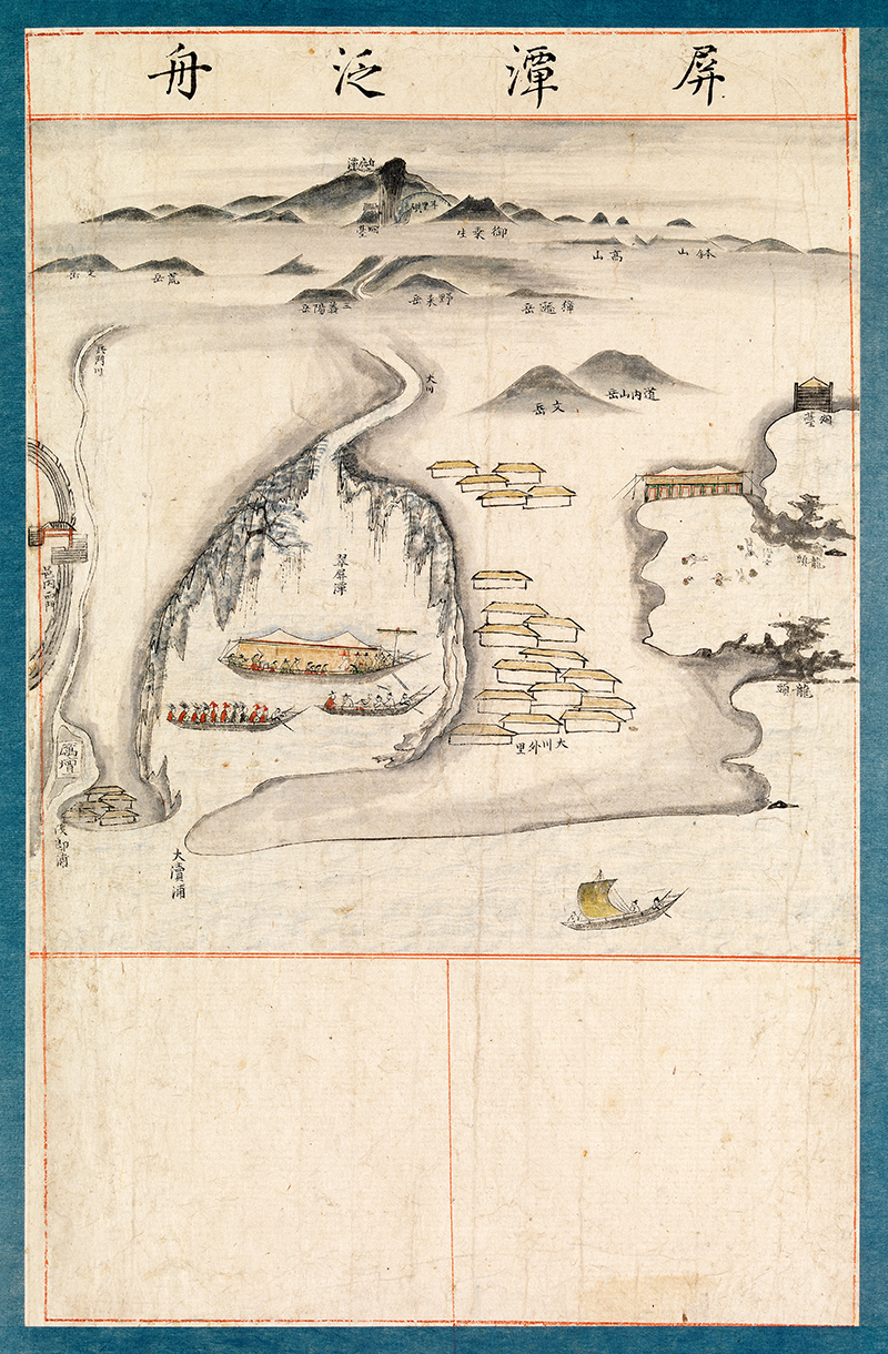 1702년(숙종 28) 11월19일 이형상 제주목사가 취병담(翠屛潭), 곧 용연(龍淵)에서의 뱃놀이모습을 그림