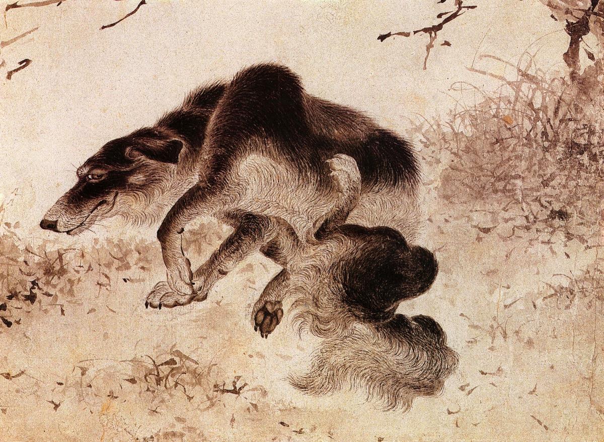 김두량(金斗樑)이 그린 영모화.【내용】종이바탕에 수묵. 세로 23㎝, 가로 26.3㎝. 국립중앙박물관 소장. 김두량의 동물화 중에서 가장 잘 알려진 것으로, 당시 청(淸)으로부터 유입된 서양화풍의 영향을 일부 반영하고 있다.